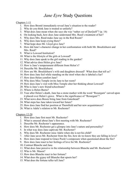 Read Jane Eyre Study Guide Questions Answers Reader